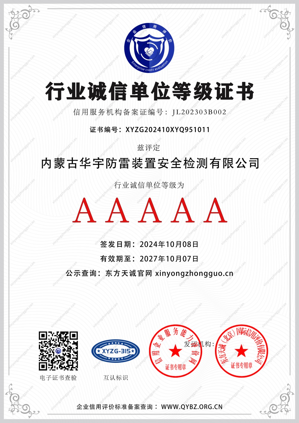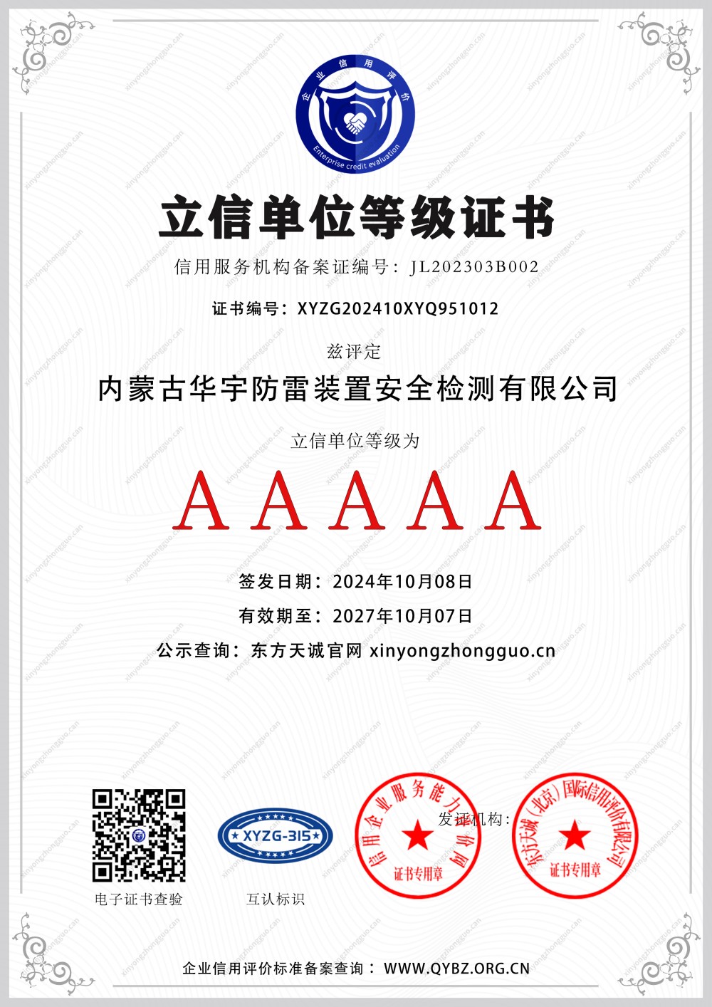您好!歡迎訪問內(nèi)蒙古華宇防雷裝置安全檢測有限公司官方網(wǎng)站!
